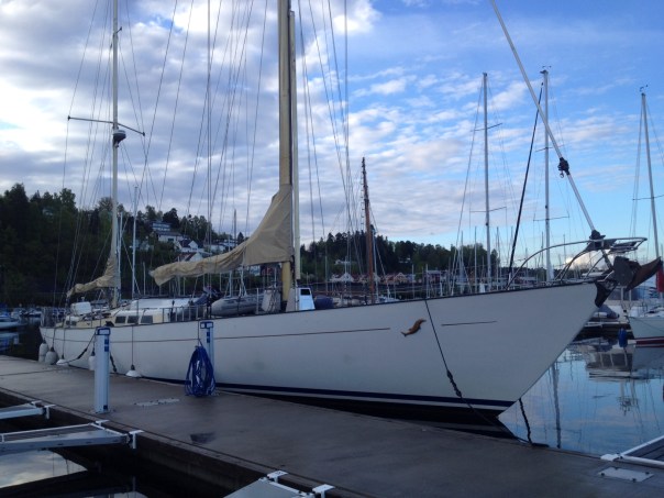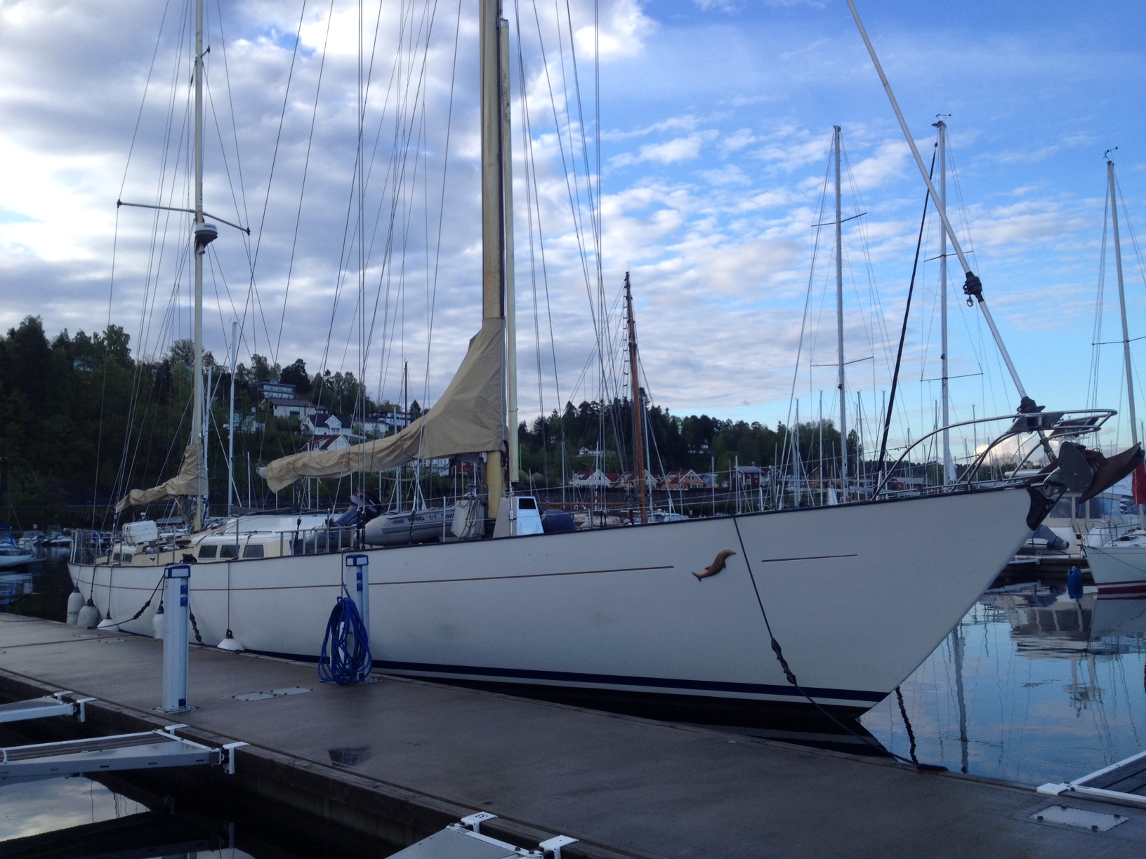 Da er Santana på plass i ny hjemmehavn i Leangbukta, Asker Marina. En flott long-side plass i lune forhold. Arbeidet med å få henne flott igjen er påstartet og er planlagt ferdig 1. Juni.
